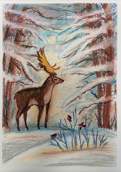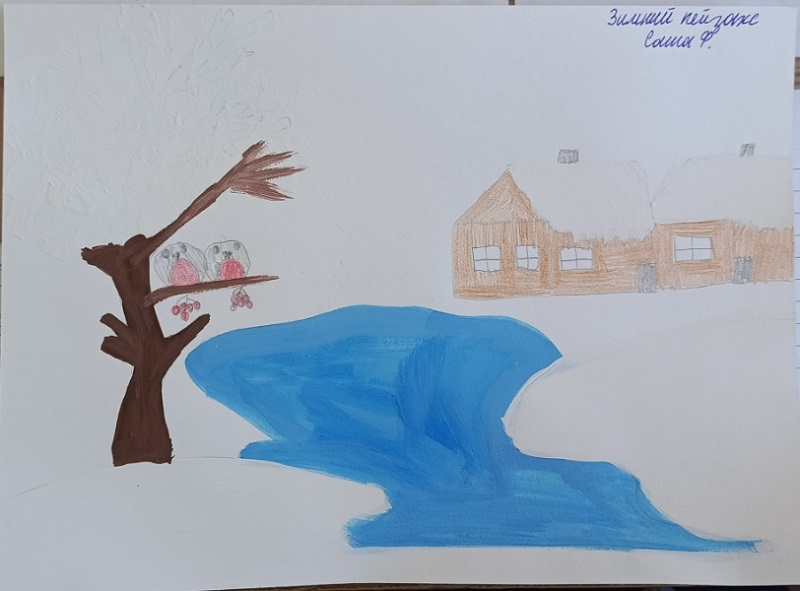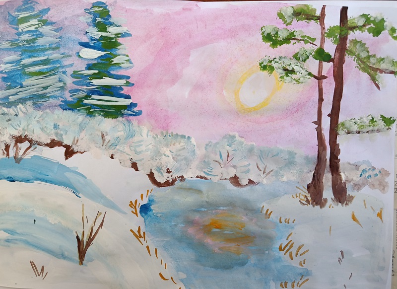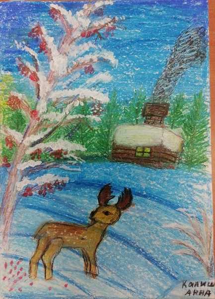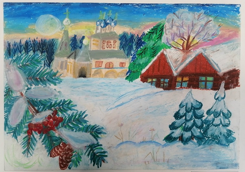 Ребята запечатлели в своих работах и запушено-заснеженные леса – даже с его обитателями и сказочными персонажами, и красоту зимней природы, и деревья в белоснежных шапках, и величественные хвойники, маяками пробивающиеся сквозь зимнюю белизну своей зеленью. Удивительны по красоте настоящие деревенские зарисовки, которые ребята представили на конкурс.