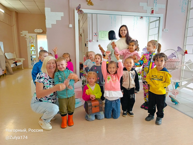Программу для них подготовили и провели работники ДК «Кварц». Дети разгадывали загадки и тем самым определяли станции, где находилось задание. Правильно его выполнив, они получали загадку к следующему этапу. Таким образом им пришлось пройти 4 станции, чтобы узнать, где прячется заветный сундучок со сладостями, который спрятал для них Буратино. Участники составляли цифры в правильном порядке, отгадывали сказки по картинкам, собирали буквы из фрагментов конструктора Лего, составляли словосочетания.