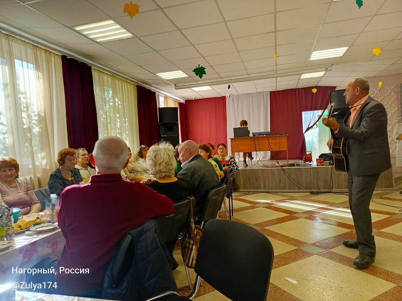 Для виновников торжества Александр Курбатов, Зульфия Черепанова и Андрей Лось исполнили задушевные песни. Кроме того, ветераны от души поиграли в различные игры, посостязались в шуточных конкурсах, попели под баян любимые песни.