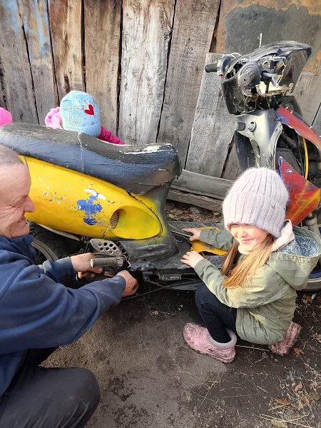 «Сегодня я провела целый день рядом с моим любимым папой, занимаясь ремонтом нашего семейного транспорта – мопеда! Да-да, представьте себе, я активно принимала участие в процессе ремонта колес! Мы вместе работали над починкой покрышек, изучали устройство тормозов и даже разобрали некоторые узлы двигателя. Благодаря терпению моего папы я смогла освоить базовые принципы ухода за транспортом и поняла, насколько важны навыки самостоятельной диагностики проблем. Папа рассказал мне массу интересных историй из своей юности, поделился секретами мастерства и объяснил, почему важно уметь самостоятельно обслуживать технику. Теперь я точно знаю, что каждая деталь транспортного средства играет важную роль, и понимаю, как приятно видеть конечный результат проделанной работы своими руками! Эти впечатления останутся со мной навсегда».