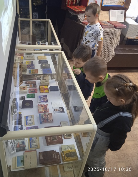 Первыми посетителями стала семья из Дуванкуля, также с мини-экспонатами уже познакомились малыши увельских детсадов «Аленушка» и «Журавушка», которые с удовольствием посмотрели и увидели – насколько детские книжки тех времен отличны от современных, но не менее интересны и красочны.