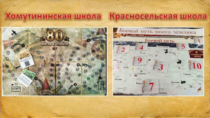 И на пути этих фронтовых дорог на игровом поле участникам предстояло вспомнить самые разные события тех военных лет: кто-то из авторов игр при ее создании выделил в специальный раздел блокаду Ленинграда или битву за Сталинград, были разделы, посвященные искусству на войне, героям ВОВ, военному оснащению. А кто-то проходил игру боевыми тропами земляков-фронтовиков. Словом, без знаний истории, в том числе периода Великой Отечественной войны, преодолеть все этапы настольных игр-ходилок просто невозможно.