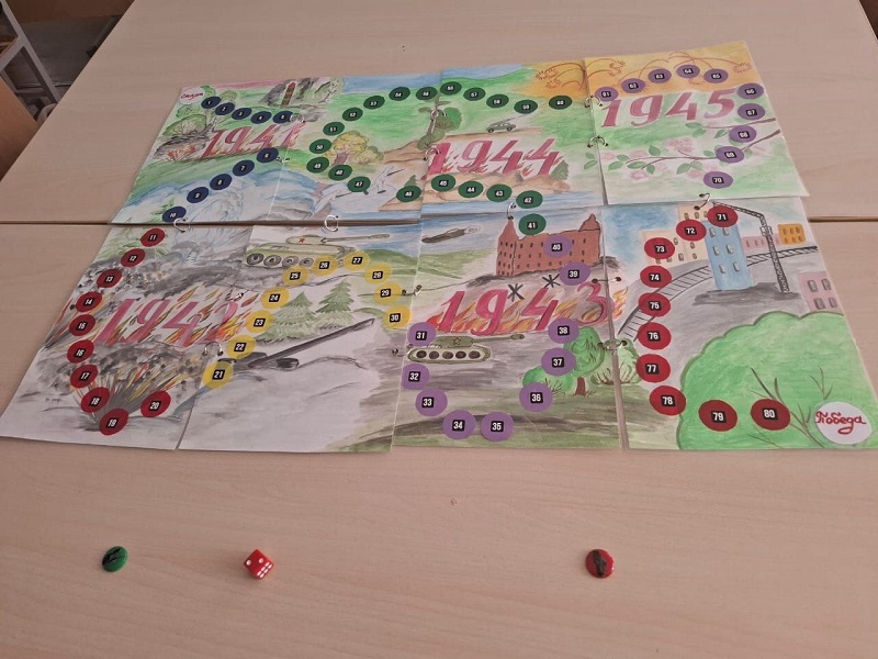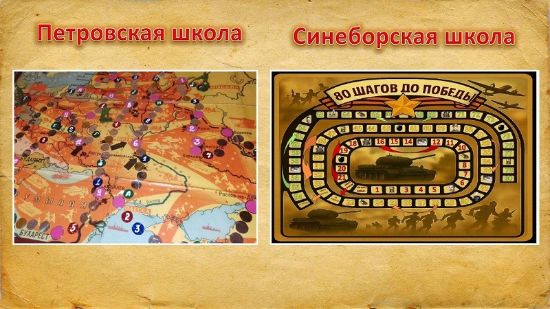 Зародившаяся в коллективе ЦДОД, эта идея при поддержке управления образования нашла продолжение в районной акции, которую педагоги так и назвали – «80 шагов до Победы» и предложили школам воплотить ее в жизнь. Проведенная организаторами жеребьевка разделила школы на пары, которые и должны были друг для друга создать и подготовить настольные игры-ходилки, а затем обменяться ими. Кстати, одно из условий акции требовало соблюдение только 80 шагов на игровом поле – по числу юбилейных лет Великой Победы.