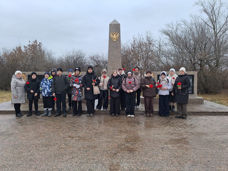 Для учеников 7 класса мы подготовили патриотический час, чтобы ребята глубже почувствовали связь времен и осознали ценность исторической памяти. Ученикам напомнили, что день Неизвестного Солдата отмечается в России с 2014 года и приурочен к знаменательному событию: 3 декабря 1966 года прах неизвестного воина был торжественно перенесён из братской могилы на 41-м километре Ленинградского шоссе и захоронен у Кремлевской стены в Александровском саду. Ребята узнали о мемориальном комплексе «Могила Неизвестного Солдата». Особое внимание в своем рассказе библиотекари уделили работе поисковых отрядов. Школьникам рассказали, как участники поискового движения ведут раскопки на местах боев, ищут останки погибших, пытаются установить их имена по личным вещам, медальонам. Каждый найденный и достойно погребенный солдат – это восстановленная судьба, возвращенное имя. Ребята с интересом слушали историю о найденном поисковиками безымянном солдате, история не просто заинтересовала их – она коснулась чего-то глубоко внутри каждого. Минута молчания прошла в полной тишине. Час памяти помог расширить знания учащихся о таком дне памяти. Проведение таких мероприятий помогает пробудить глубокое чувство патриотизма, и понять, что это не про далекое прошлое – это про нас, про нашу благодарность и про то, как важно не допустить, чтобы чьи-то имена навсегда затерялись во времени. В День Неизвестного Солдата традиционно отдают долг памяти не только павшим на фронтах Великой Отечественной, но и всем, кто отдал жизнь в других военных конфликтах. В знак благодарности подвигу наших солдат сотрудники библиотеки, ДК и ученики собрались у мемориала погибшим землякам, чтобы возложить цветы.