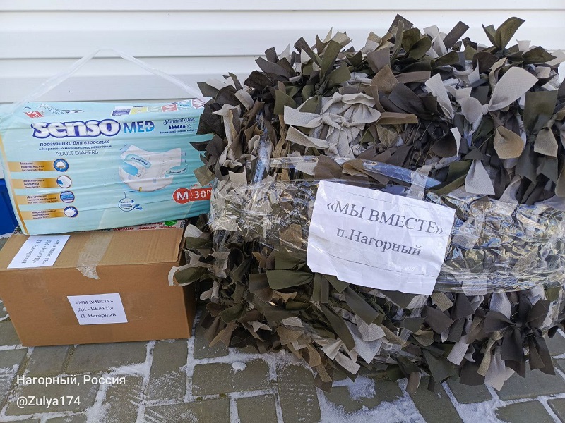 Каждый день, несмотря на выходные дни или морозы, участники волонтерского движения «Мывместе» собираются, чтобы изготовить так необходимые для бойцов маскировочные сети. Они прекрасно понимают, что от их работы зависят жизни наших защитников, безопасность техники, укрытий и блиндажей. Мы знаем, что их кропотливая работа всегда по достоинству оценивается бойцами, и они с благодарностью принимают такие необходимые посылки от наших земляков. Нагорненцы отправили в СВО очередную партию масксетей.